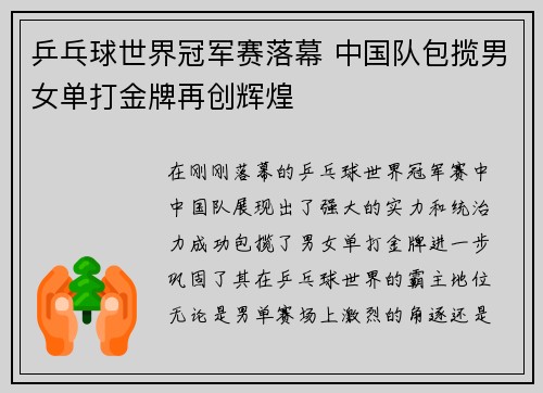 文章摘要:随着羽毛球世锦赛的激烈进行,国羽选手们展现了强大的实力与毅力,屡次力克强敌,纷纷晋级决赛。在这场全球羽坛的巅峰对决中,国羽的表现无疑是最为亮眼的,他们不仅展现出了过硬的技术功底,还凭借强大的...